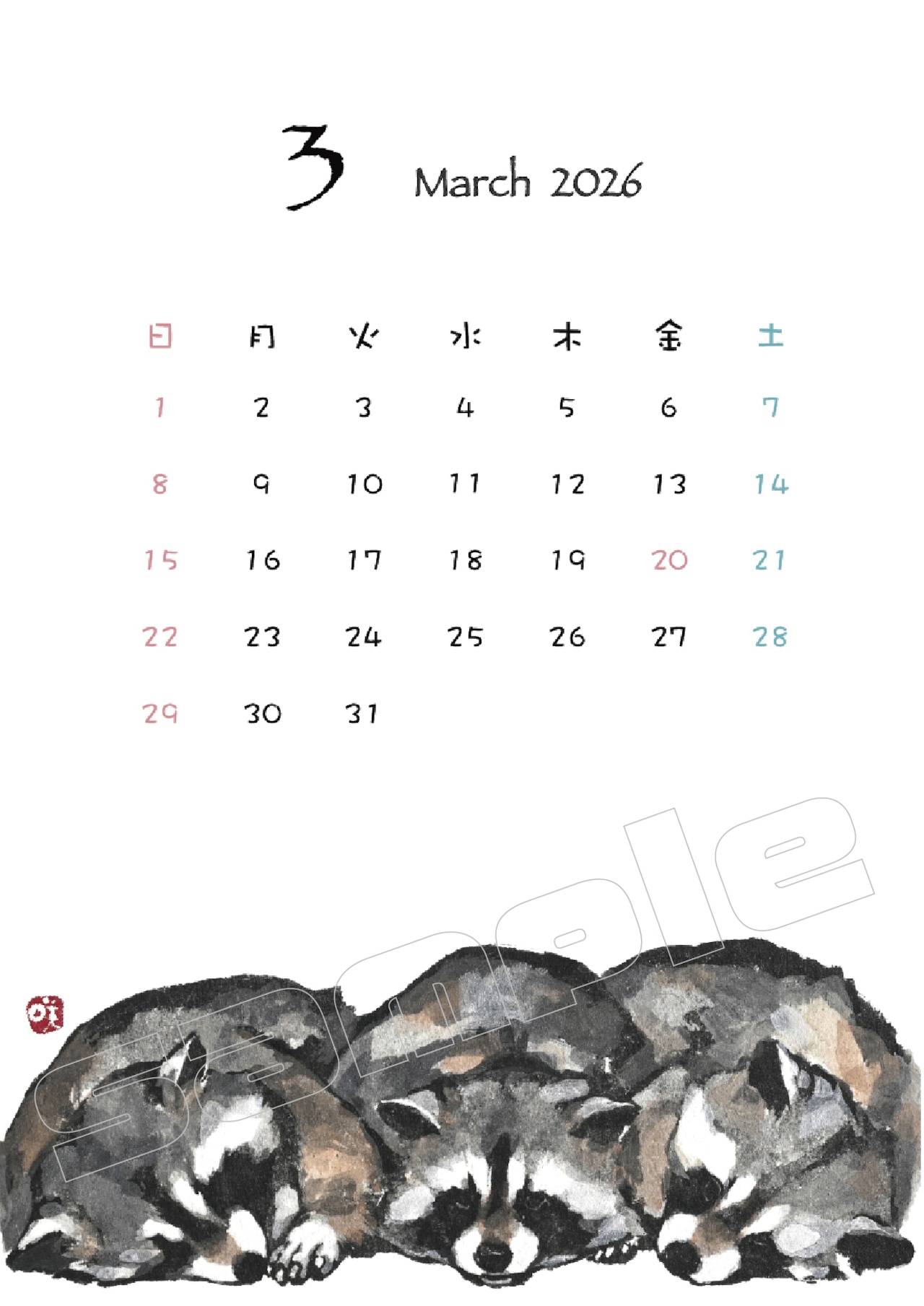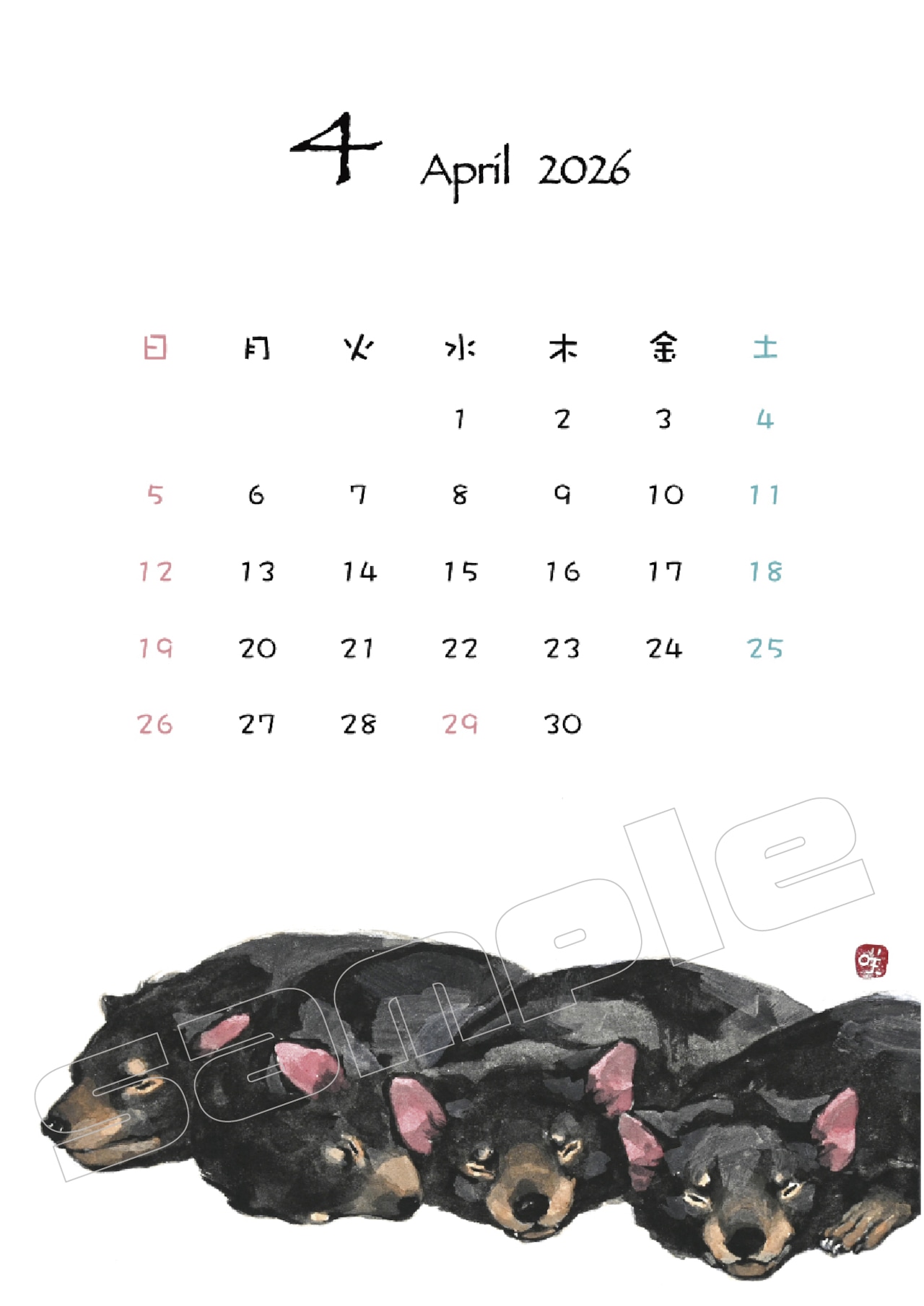 月毎に1匹ずつ増える2026年のカレンダーです。